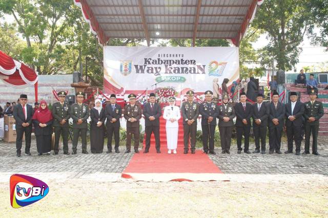 Upacara tersebut berlangsung khidmat dan dihadiri oleh jajaran Forkopimda, pejabat di lingkungan Pemkab Way Kanan, serta berbagai elemen masyarakat yang turut merayakan hari lahir kabupaten berjuluk Bumi Ramik Ragom tersebut.