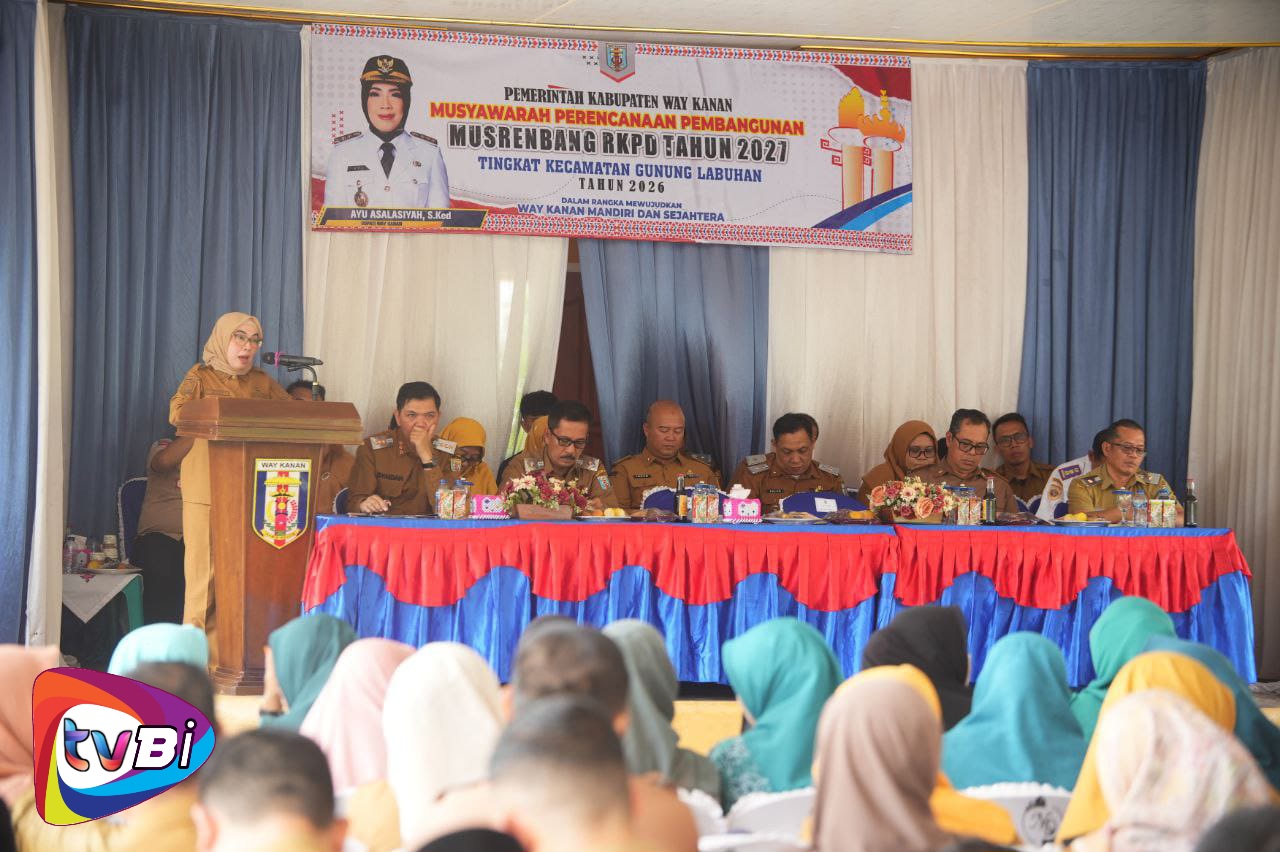 Way Kanan (Rabu,4/2/2026) | Bupati Way Kanan, Ayu Asalasiyah, S.Ked., membuka Musyawarah Perencanaan Pembangunan (Musrenbang) Tahun 2026 Tingkat Kecamatan Gunung Labuhan, Senin (09/02/2026), di Aula Kecamatan Gunung Labuhan.