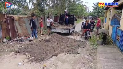 Diketahui, jalan yang berlobang dan rusak parah menjadi jalur utama yang setiap hari dilalui masyarakat untuk beraktivitas. Dini hari minggu, 2 November 2025, masyarakat melakukan gotong royong dengan menimbun jalan sepanjang 400 meter yang berlobang dan rusak parah, selain menimbun jalan menggunakan sirtu, warga juga memasang bola lampu untuk penerangan jalan. Aksi ini dilakukan demi keselamatan pengguna jalan, meski menggunakan dana masyarakat sendiri.
