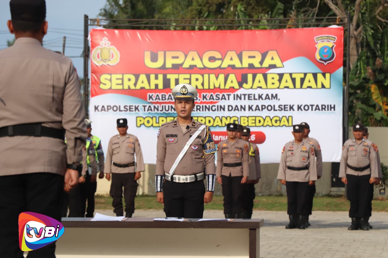 Serdang Bedagai | Kapolres Serdang Bedagai (Sergai) AKBP Jhon HR. Sitepu, S.I.K., M.H., pimpin upacara serah terima jabatan (Sertijab) Kabag Ops, Kasat Intelkam, Kapolsek Tanjungberingin, dan Kapolsek Kotarih.