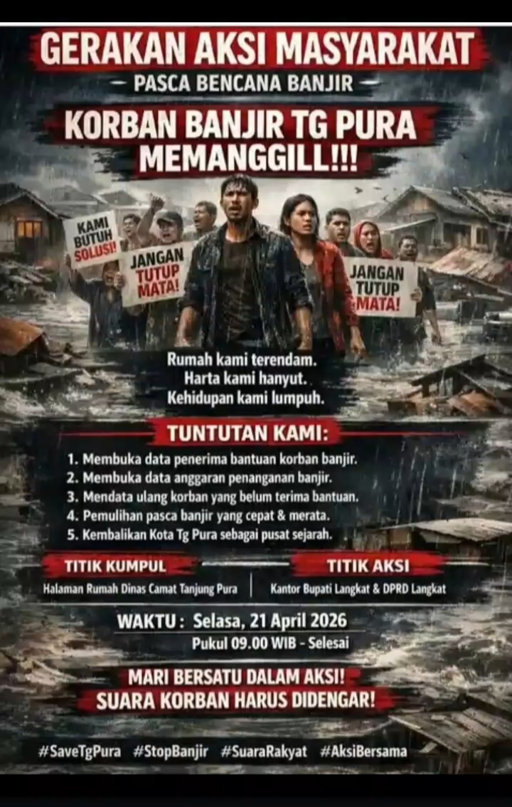Langkat (Minggu, 19/04/2026) | Forum korban bencana banjir Kabupaten Langkat gelar aksi tanggal 21/04/2026 terkait hilang nya Sila 5(keadilan sosial bagi seluruh rakyat Indonesia),