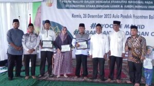 Peran masjid dalam menjaga stabilitas nasional pada pemilu damai 2024 di Sumatra Utara dengan luber dan jujur adil menuju Indonesia maju. Seminar atau diskusi antar berbagai desa di 15 kecamatan, para peserta yang hadir serta ustad dan ustazah yang juga mengikuti seminar tersebut guna mendengarkan penjelasan moderator dari Medan.