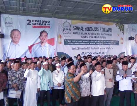 SUMATERA UTARA | Pimpinan Wilayah Masyarakat Cinta Masjid Indonesia(MCMI) Sumatera Utara Bersama Para Da’i, mengundang masyarakat di 15 Kecamatan, sekira 250 orang peserta yang hadir mengikuti Seminar Konsolidasi dan Deklarasi di Aula Pondok Pesantren Baitul Qur’an di Desa Tadukan Raga Kecamatan STM Hilir Kabupaten Deli Serdang(Kamis, 28/12/2023).
