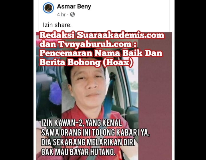 Pemilik foto besok Rabu, 13/03/2024 akan membuat laporan ke Polda Sumut atas pencemaran nama baik yang tersebar yang dilakukan pemilik akun Facebook Asmar Beny pada tanggal Jum’at, 8/3/2024 berapa hari yang lalu telah di bagikan 13 dan 44 kali.