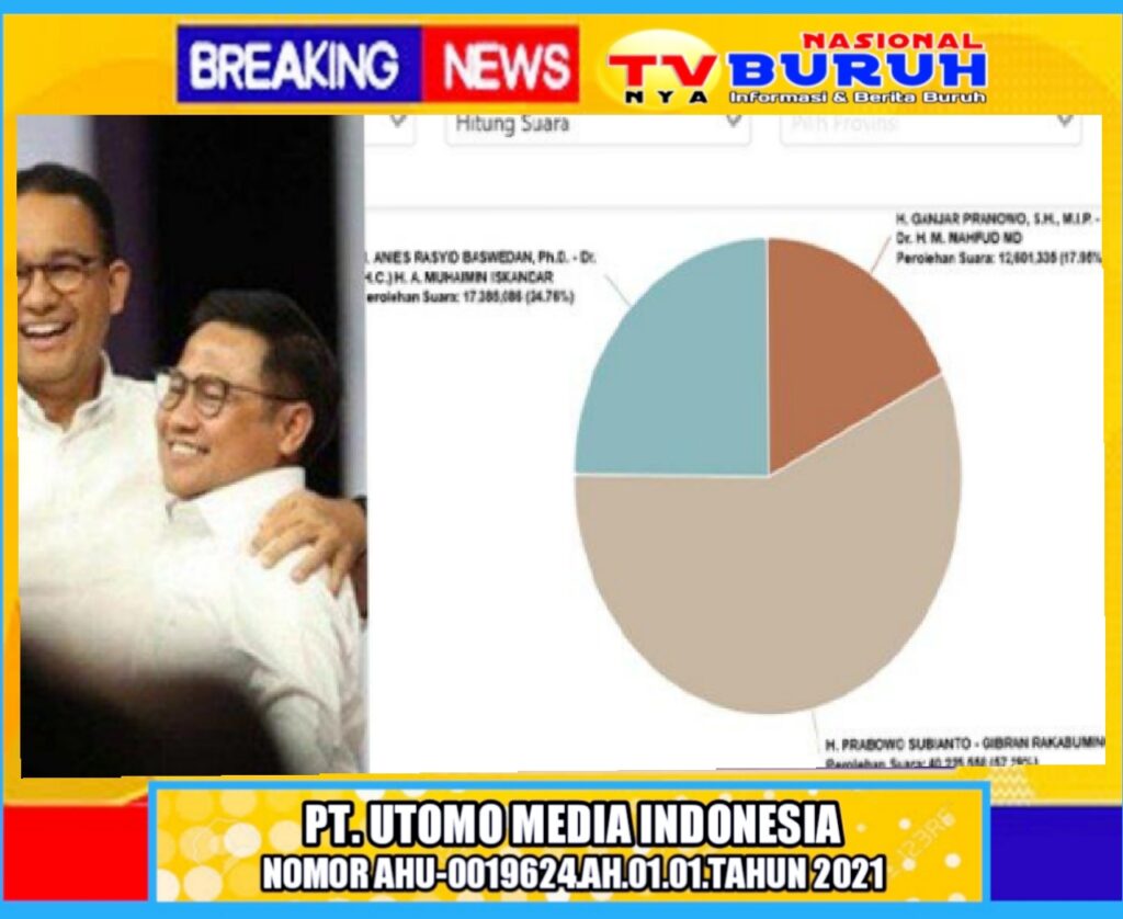 TVNYABURUH.COM – Suara Anies-Muhaimin sempat melonjak lalu mendadak jeblok di sistem informasi rekapitulasi (Sirekap). Minggu, 18 Februari 2024 15:56 WIB.