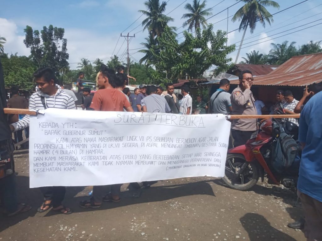 “bahwa masyarakat lingkungan tujuh pasar sibuhuan,kabupaten padang lawas menginginkan aspal bukan abu,karena sudah banyak masyarakat yang yang terkena dampak contohnya batuk, sesak napas dan lainnya dan pengguna jalan juga sudah mulai resah dengan dampak abu tersebut ujarnya”.