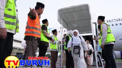 MEDAN | Jemaah haji yang tergabung dalam Kelompok Terbang (Kloter) 1 Debarkasi Medan asal Kota Padangsidimpuan tiba di tanah air pada Kamis (12/6/2025). Kloter 1 tiba dengan Pesawat Garuda Indonesia dengan nomor penerbangan GIA 3401 di Bandara Internasional Kualanamu Deli Serdang pukul 18.00 WIB.