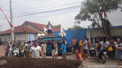 Aparat kepolisian telah berjaga, ditengah kerumunan para pekerja perusahaan tepung dan warga sekitar. (Tim)