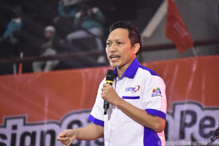 Dalam momentum penuh semangat itu, H. Abdul Bais, Ketua Umum PP SPEE FSPMI sekaligus calon Presiden FSPMI periode 2026–2031, menyampaikan orasi yang membakar semangat ribuan peserta aksi untuk terus berjuang menuntut kenaikan upah layak tahun 2026.