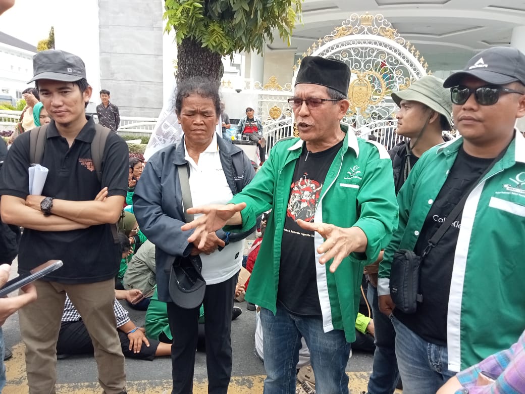 Massa menuntut jawaban dan memberikan tenggat waktu kepada Gubernur Sumut agar menyelesaikan persoalan konflik agraria ini.