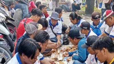 Namun, purakan yang dimaksud bukan soal itu. Ratusan buruh Pakerin yang sedang melakukan aksi untuk menuntut haknya. Terlihat melakukan purakan. Mereka menggelar makan besar bersama di tengah-tengah aksi demontrasi.