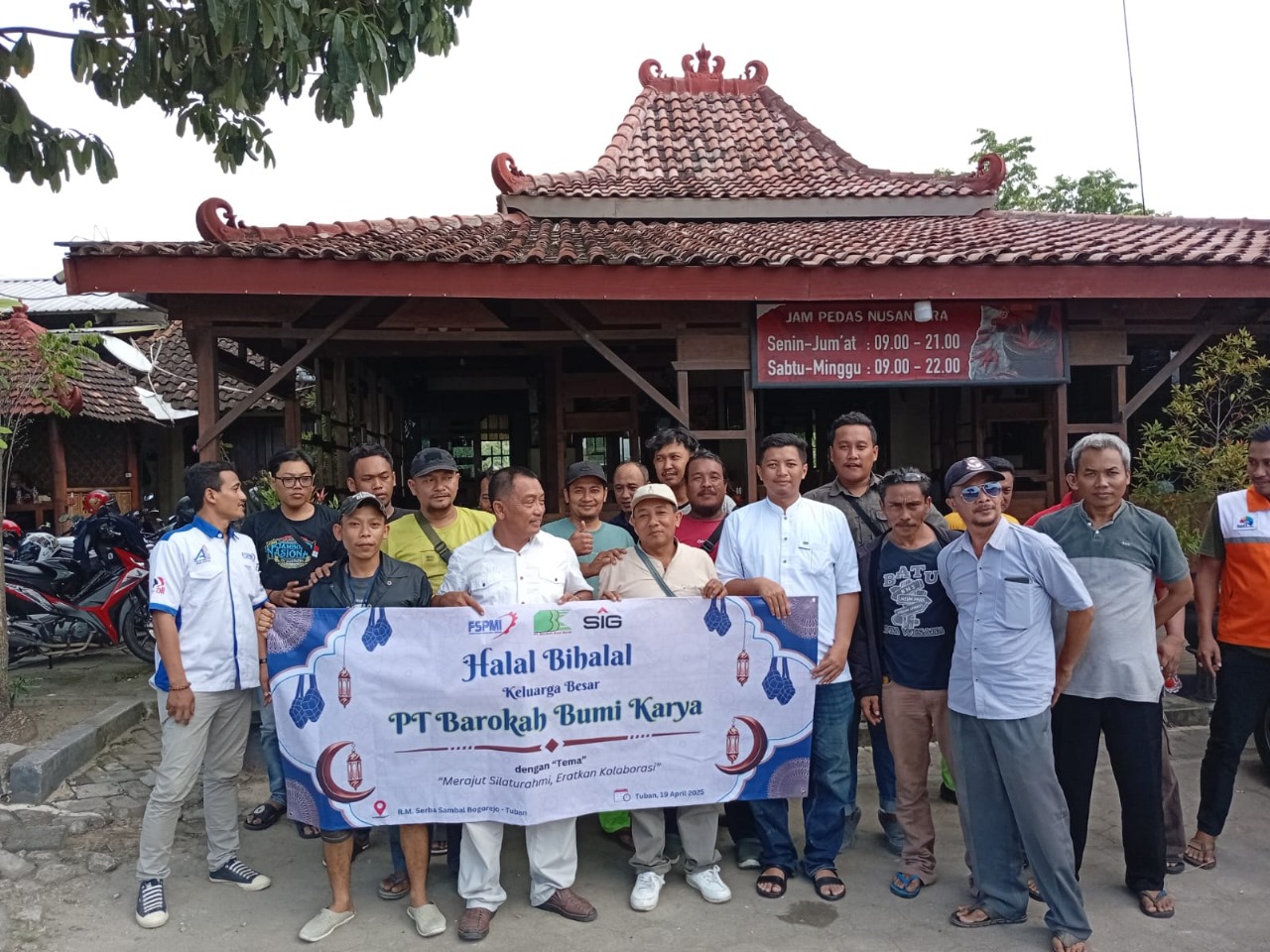 TUBAN | TVNYABURUH, – Pada hari Sabtu, 19 April 2025, keluarga besar pekerja PT Barokah Bumi Karya (BBK) mengadakan acara Halal Bihalal yang bertempat di Rumah Makan Aneka Sambal, Jalan raya Merakurak, Dusun Bogorejo, Kecamatan Tuban, Kabupaten Tuban, Jawa Timur.